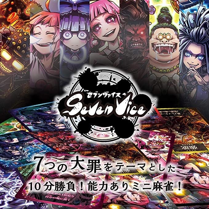 「セブンヴァイス」は7つの大罪をモチーフにしたカードゲームで、2枚の手札から1枚を場に出し、カードのスキルを発動させて相手のカードを奪ったり有利に進めたりしながら勝利を目指します。同じ種類のカードを4枚揃えるか、7種類全てのカードを集めることで点数を獲得できます。